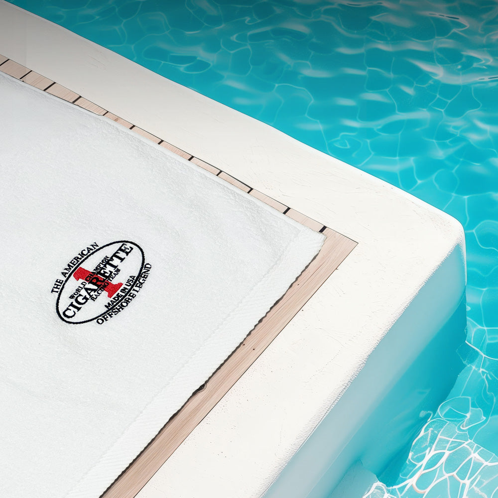 Crafted from premium 100% cotton, this luxurious towel delivers superior softness and absorbency that improves with every use. Finished with a refined embroidered Cigarette Oval Logo on the lower left corner, it brings elevated style to any beach, boating or poolside moment.
